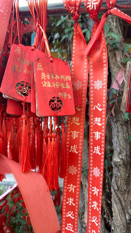 下图↓:寺院及许愿带照片