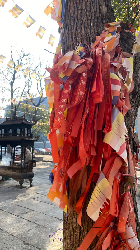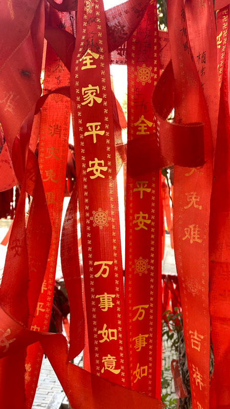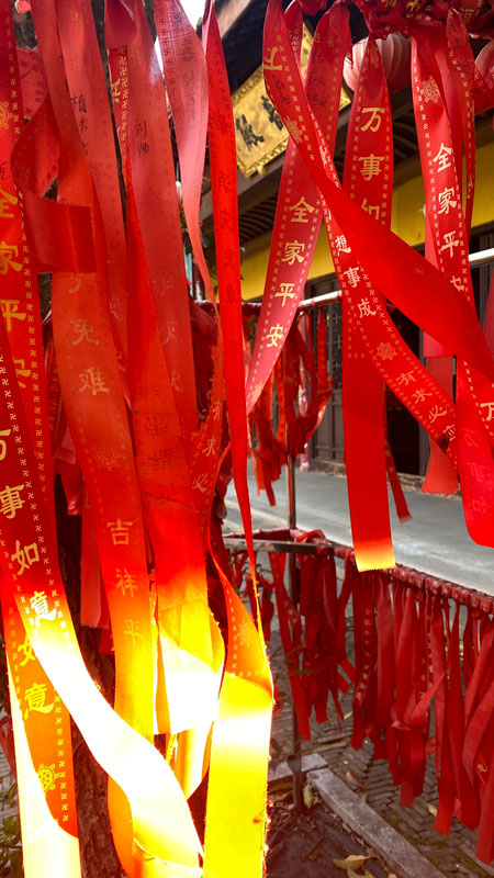 下图↓:寺院及许愿带照片