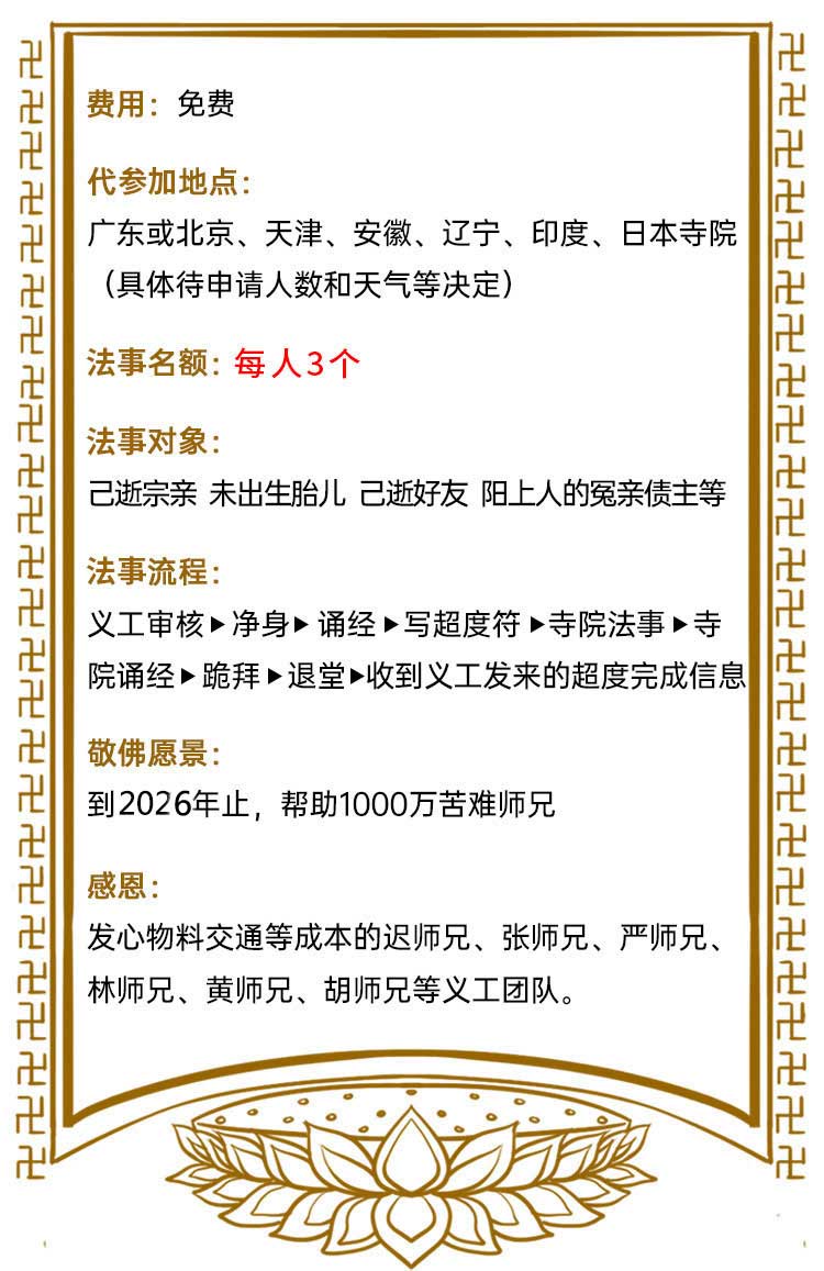 法事时间:阳历2026年1月19日
